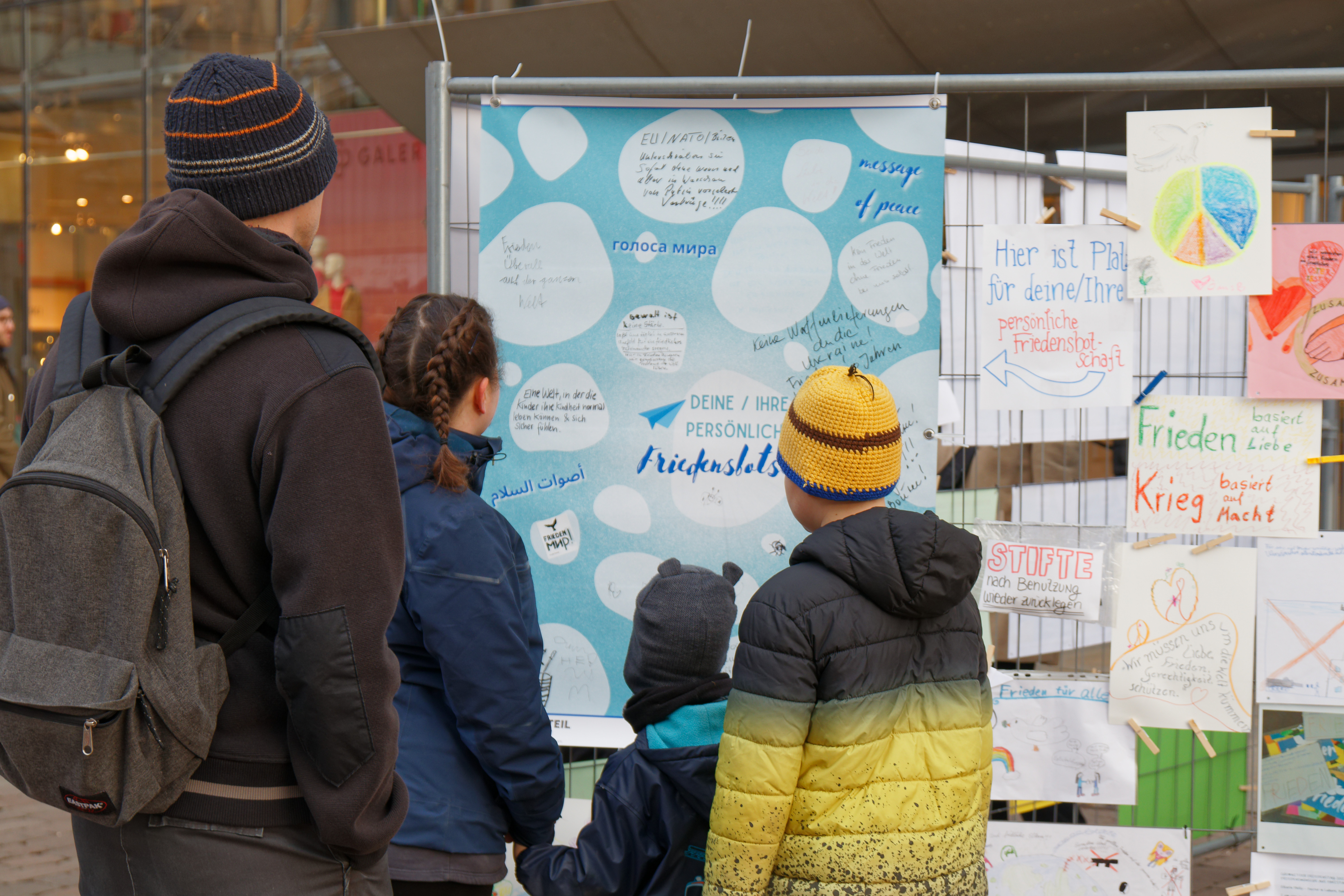 Die bunte Galerie mit vielen Friedenswünschen aus Chemnitz und der Welt war ein Besuchermagnet.